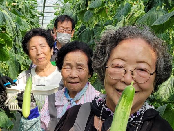 치유농업 프로그램은 아우내은빛복지관의 노인맞춤돌봄 서비스 이용 어르신을 대상으로 병천면 소재 봉황52농장에서 8회에 걸쳐 오이 수확, 오우김치 담그기, 오이비누 만들기 등으로 진행됐다.
