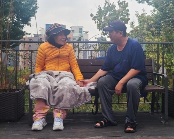 80대 노모를 홀로 모시고 살고 있는 그는 매일 어머니를 등에 업고 계단을 오르내린다. 엘리베이터가 없는 건물에 거주하고 있음에도 불구하고 혼자 거동을 할 수 없는 어머니에게 바깥 공기를 쐬어드리기 위해서다. 집 앞 손기정 공원 둘레길에서 함께 산책하고 말동무가 되어 드리는 것은 이미 습관으로 깊이 자리 잡아 이젠 빼놓을 수 없게 된 그의 소중한 일과다.