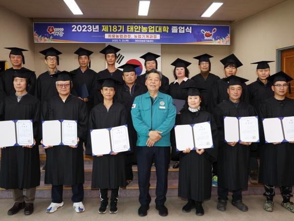 한편, 태안농업대학은 고부가가치 미래 성장을 견인하는 농업인을 육성하기 위한 것으로, 2006년 환경농업과정 1기를 시작으로 올해까지 총 948명의 수료생을 배출하는 성과를 거두며 태안 농업기술 발전의 산실로 자리매김하고 있다.