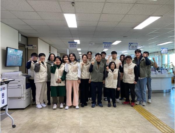 옥천군 민원실 직원들이 동절기를 맞아 통일되고 따뜻한 이미지의 근무복을 착용하고 민원응대에 나서고 있다.