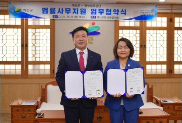예산군과 정부법무공단은 지난 23일 군청 상황실에서 법률 사무지원 업무협약을 체결했다.
