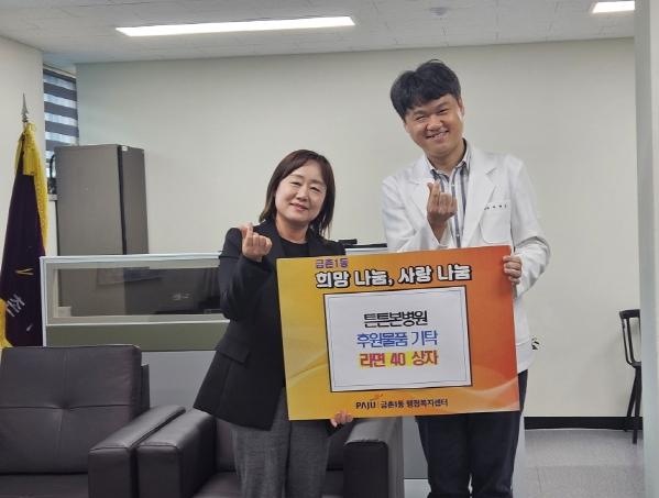 파주시 금촌1동은 지난 22일 금촌튼튼본의원에서 라면 40박스를 기탁 받았다고 밝혔다.