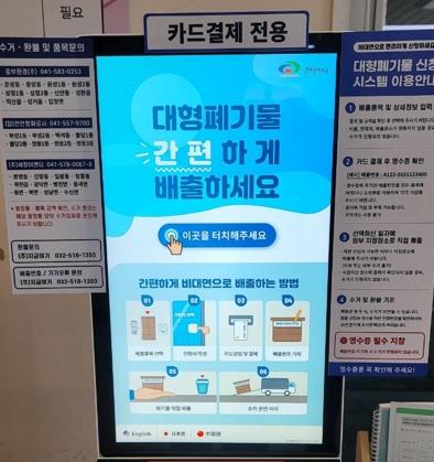 천안시가 대형폐기물 배출 편의 개선을 위해 청룡동 행정복지센터에서 무인 단말기(키오스크)를 시범 운영한다고 24일 밝혔다.