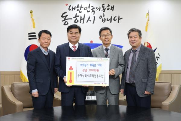동해삼육사회적협동조합에서 저소득 소외계층의 따뜻한 겨울나기를 위해 성금 100만원을 기탁 했다.