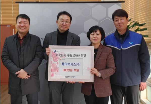 기흥구 신갈동에도 기부금이 전달됐다. ㈜용마로지스는 어려운 이웃을 위해 사용해달라며 300만원을 22일 기탁했다.