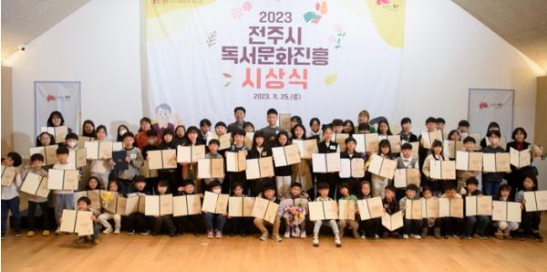 시는 25일 전주혁신도시 복합문화센터에서 우범기 전주시장과 수상자 및 가족 등 150여 명이 참석한 가운데 ‘2023 전주시 독서문화진흥 시상식’을 가졌다.