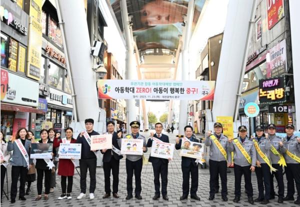 대전 중구는 23일 제17회 아동학대 예방의 날을 기념해 으능정이 문화의거리에서 아동학대 예방 집중 홍보활동을 전개했다고 밝혔다.