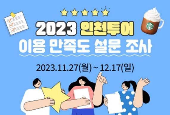 이번 조사는 11월 27일부터 12월 17일까지 총 3주간 진행되며, 지역 제한없이 인천투어 홈페이지 방문자라면 누구나 참여할 수 있다. 이벤트 참가자 중 300여 명을 추첨해 모바일 전자 상품권을 증정할 계획인데, 당첨자 발표는 12월 22일 인천투어 홈페이지 공지사항에 게시하고 당첨자에게는 개별적으로 문자를 발송할 예정이다.