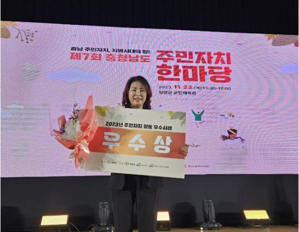 신창면 주민자치회가 지난 23일 청양군민체육관에서 개최된 ‘제7회 충청남도 주민자치 한마당’에서 우수상을 차지했다.