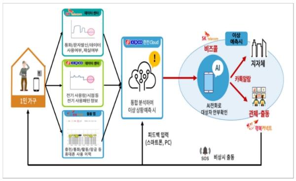전국 최초로 전력사용량, 통신정보, 돌봄 앱 등 정보통신 기술을 종합적으로 활용해 고독사 위험군의 위기 신호를 감지하고, 24시간 긴급 출동할 수 있는 서비스다. 야간, 주말 또는 휴일에 동주민센터에서 즉시 출동하기 어려웠던 기존 안부 확인 서비스의 문제점을 민관 협력을 통해 개선한 사례다.