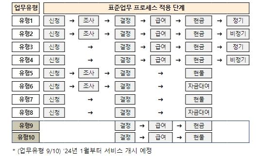 별도 신청 절차 없이 자격 요건에 따라 대상자를 선정, 지원할 수 있도록 표준업무 유형 2종을 추가 구축하여 명절 위문금, 난방비 지원금 등 수기로 처리하던 일회성 사업도 시스템을 통해 지급하게 된다.