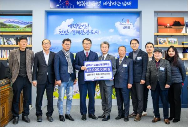 장충남 군수는 “목동 주민자치위원회 회원분들의 고향사랑기부제 동참에 진심으로 감사의 말씀을 드린다”며 “이번 상호기부를 통해 남해군과의 상생발전 활동이 더욱 확대됐으면 한다”고 밝혔다.