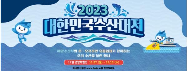 해양수산부는 11월 27일부터 12월 13일까지 17일 동안 ?대한민국 수산대전?연말 특별전?을 개최한다.
