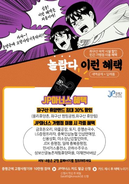 카드 발급은 증평군 고향사랑기부제 참여(10만원 이상) 후 JP아너스 카드 발급 신청서를 작성해 이메일로 보내면 된다.