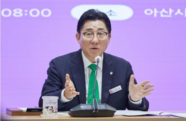 박경귀 아산시장이 27일 열린 12월 확대간부회의에서 “시정을 마무리하는 시기인 만큼 올해 주요 사업의 점검과 철저한 마무리, 내년 업무 준비에 만전을 기해달라”고 주문했다.