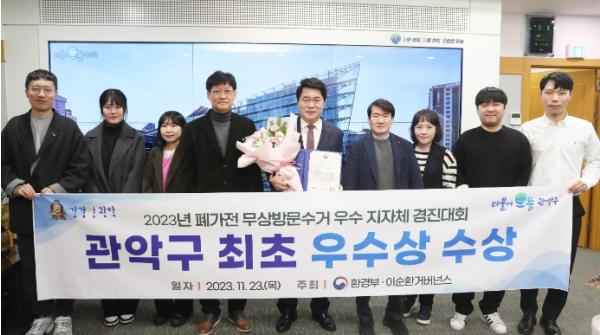 관악구가 11월 23일, ‘2023년 폐가전 무상방문수거 우수 지자체 경진대회’에서 방문수거운영 부문 ‘우수상(환경부 장관상)’을 수상하는 영예를 안았다.