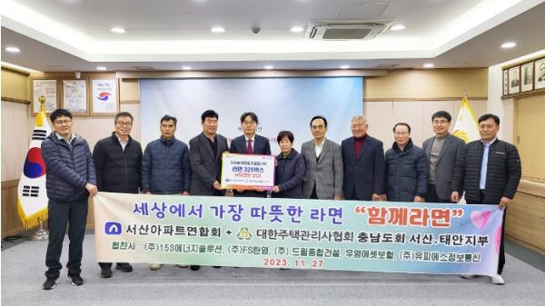 충남 서산시는 27일 서산시아파트연합회와 주택관리사협회 서태안지부에서 지역의 어려운 이웃을 위해 450만 원 상당의 후원 물품을 서산시에 기탁했다고 밝혔다.