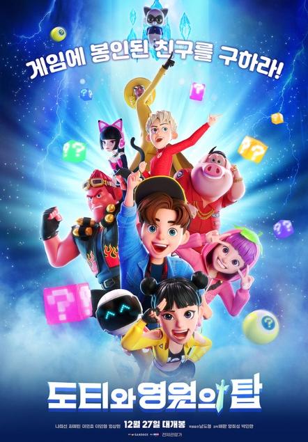 전체 구독자 780만 명에 달하는 국내 최고의 크리에이터 도티, 옐언니, 밍모, 코아가 실사 장면 출연뿐만 아니라 애니메이션 목소리 연기를 펼친 K 애니메이션 화제작 ‘도티와 영원의 탑’이 12월 27일 개봉을 확정하고 상상력 자극하는 메인 포스터를 전격 공개했다. [감독: 배완, 양희성, 박인한 | 출연: 나희선, 최예린, 이민호, 이민형]