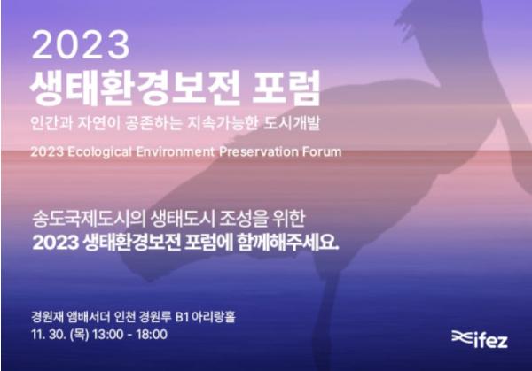 인천경제자유구역청은 오는 30일 오후 1시부터 6시까지 송도 경원재앰배서더 호텔 아리랑홀에서 ‘2023 생태환경보전 포럼’을 개최한다고 28일 밝혔다.