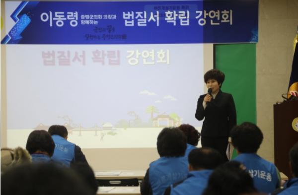 이동령 증평군의회 의장이 지난 27일 증평군새마을회관 회의실에서 바르게살기운동증평군협의회 회원들을 대상으로 법질서 확립 특강을 실시했다.