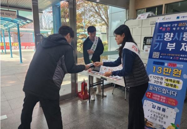 금산군은 연말 직장인 고향사랑기부제 홍보 캠페인에 박차를 가하고 있다.