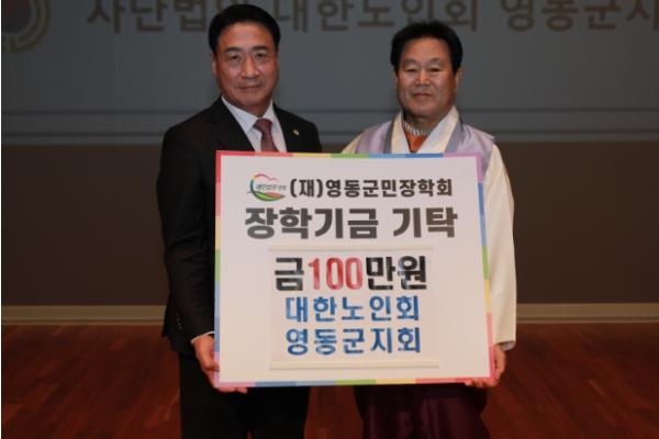 대한노인회 영동군지회는 (재)영동군민장학회에 100만원의 장학금을 맡겼다.
