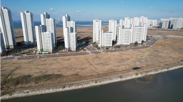 인천경제자유구역청은 송도국제도시 6공구 힐스테이트레이크송도 1·2차 인근 A12부지(5만3,000㎡)의 갈대를 예초하고 은닉된 폐기물을 수거했다고 30일 밝혔다,