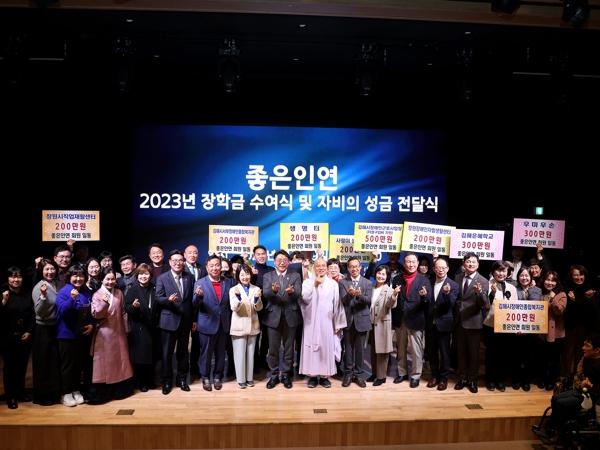 김해시 장유2동 소재 장유사 사회복지 나눔 단체 ‘좋은 인연’은 지난 29일 남명아트홀에서 2023년 장학금 수여식 및 자비의 성금 전달식을 개최했다고 30일 밝혔다