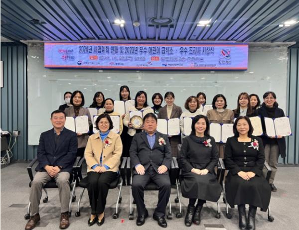 우수 어린이 급식소는 △최우수상 리가어린이집, 버그네어린이집, 풀잎어린이집 △우수상 금천어린이집, 꼬마또래어린이집, 나나어린이집, 롯데어린이집, 별숲어린이집, 신성나비랑어린이집, 햇살가득어린이집이 수상했고, 우수 조리사는 △풀잎어린이집, 금천어린이집 신성나비랑어린이집 조리사가 수상했다.