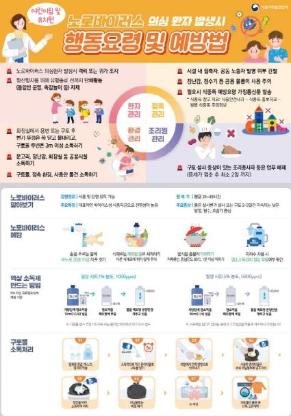 이이구 위생과장은 “영유아는 면역력이 낮아 노로바이러스에 쉽게 감염될 수 있으므로 올바른 손 씻기, 환경 소독 등을 실시해야 하며, 환자의 구토물에 오염된 물품 등에 대해 올바른 절차로 소독해야 한다”라며, “파주시는 앞으로도 특정 시기에 증가할 수 있는 식중독 예방을 위해 사전 교육과 홍보에도 최선을 다하겠다”라고 전했다.