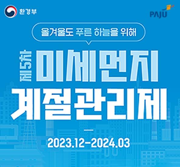 김경일 파주시장은 “2019년부터 시행하고 있는 계절관리제는 시민들의 적극적인 참여로 미세먼지 발생을 줄이는 데 많은 도움이 되고 있다”라며, “이번 계절관리기간에도 대기질 개선을 위해 시민 여러분의 적극적인 동참을 바란다”라고 말했다.
