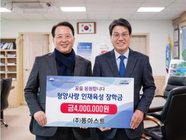 ㈜동아스트가 11월 30일 청양군청을 방문해 청양사랑인재육성장학회에 장학금 400만 원을 전달했다.