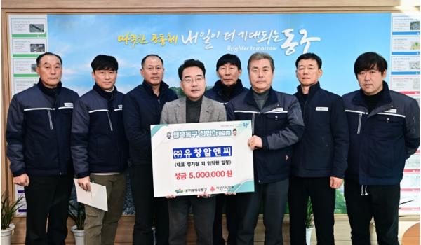 ㈜유창알앤씨는 지난 30일, 동구청을 방문해 어려운 이웃을 위해 사용해달라며 성금 500만원을 기탁했다.