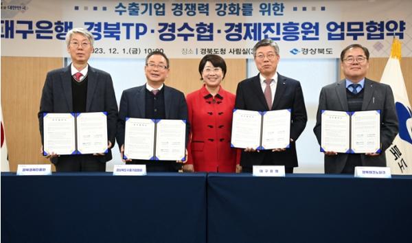 경북도는 수출 활성화를 위해 도내 수출지원기관인 경북수출기업협회, 경상북도경제진흥원, 경북테크노파크, DGB대구은행과 함께 지난 1일 수출기업 경쟁력 강화 및 상생금융 실천을 위한 업무협약을 체결했다.
