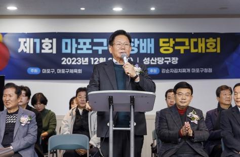 박강수 마포구청장은 격려사를 통해 “당구를 사랑하는 여러분과 함께 대회의 첫 회를 열게 돼서 매우 기쁘고 뜻깊다”라며 “이번 대회가 선수 여러분의 화합과 친목을 다지는 계기가 되기를 바라며, 생활체육으로서 당구가 더욱 발전할 수 있도록 마포구도 함께 하겠다”라고 말했다.