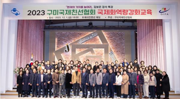 구미국제친선협회는 1일 사곡동 제이컨벤션에서 회원들의 국제화 마인드 함양 교육을 통한 국제교류 활성화를 위해 하반기'구미국제친선협회 국제화 역량 강화교육'을 실시했다.