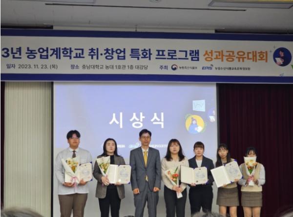 충북생명산업고등학교은 4일,'2023년 농산업 실전 취?창업 캠프'에서 2학년 특용원예과 전은빈, 김세영 학생이 대상(농림축산식품부 장관상)을 수상했다.