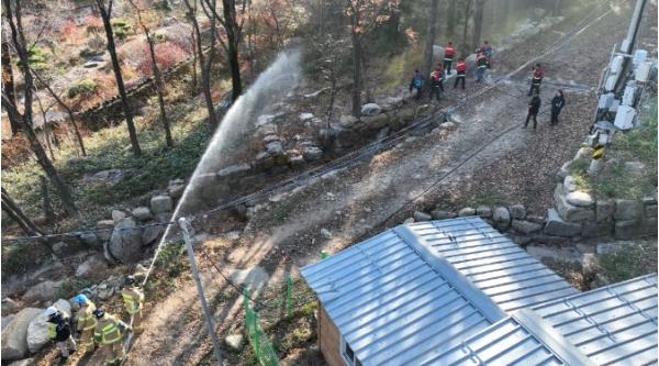 아울러 산불 지휘 차량을 활용한 산불 현장 통합지휘체계 점검, 산불 상황에 따른 산불 진화차 및 산불 진화기계화시스템, 범어사 내원암 일원에 설치된 산불 소화 시설 2기를 가동하여 훈련을 성공적으로 마쳤다.