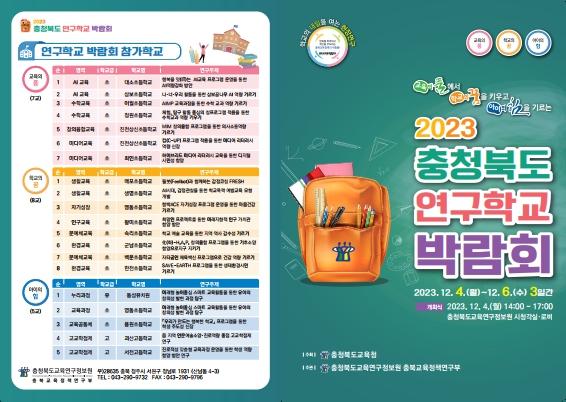 충청북도교육청 직속기관 교육연구정보원은 4일부터 6일까지 3일간, 교육연구정보원에서 '2023. 충청북도 연구학교 박람회'를 개최한다.