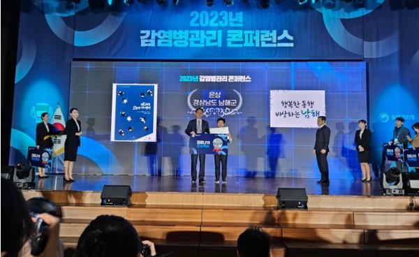남해군이 지난 1일 강원도 평창군 알펜시아리조트에서 열린 ‘2023년 감염병관리 콘퍼런스에서’ 코로나19백서 평가부문에서 질병관리청장상(은상)을 수상했다.