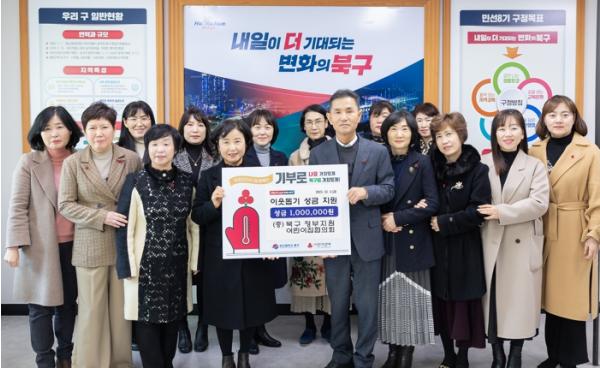 북구 정부지원어린이집협의회는 2019년부터 매해 연말마다 이웃사랑 성금을 기탁하며 저소득 취약계층을 위한 나눔문화 확산에 적극 앞장서고 있다. 이번 기탁은 12월 1일부터 내년 1월 31일까지 진행되는 희망2024나눔캠페인의 첫 성금 기부로 그 의미가 더욱 뜻깊다.