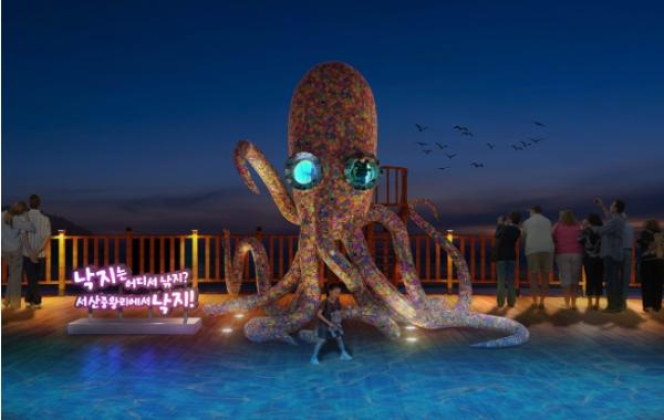 낙지를 예술적으로 형상화한 낙지조형물과 ‘낙지는 어디서 낚지? 서산 중왕리에서 낙지!’라는 글씨조형물 등으로 생동감과 감동을 느낄 수 있는 공간을 연출할 계획이다.