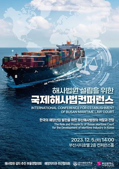 한국의 해양산업 발전을 위한 부산해사법원의 역할과 전망을 논의하기 위해 마련됐으며, 해사법원 설치추진 부울경협의회, 해양자치권 추진협의회, 한국해양대, 부산시가 공동 주최한다.