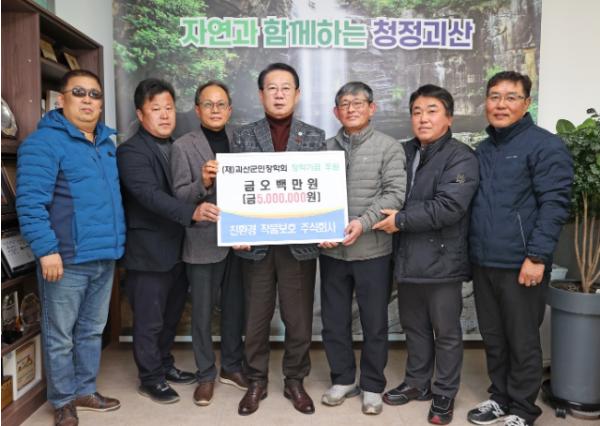 친환경작물보호㈜는 지난 4일 괴산군민장학회에 장학기금 500만 원을 기탁했다.