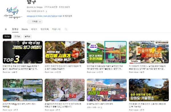 양구군이 운영하는 공식 유튜브 채널이 지역 홍보 역할을 톡톡히 해내며 소통 창구로 자리 잡고 있다.