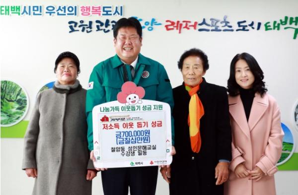 철암동 성인문해교실 수강생들은 지난 4일 태백시를 방문해 어려운 이웃들을 위해 사용해달라며 성금 70만원을 전달했다.