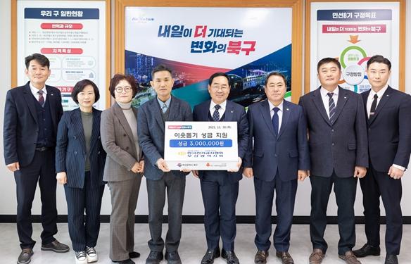 부산 북구는 지난 30일 ㈜한국전기공사협회 부산광역시회 장학회에서 북구청을 찾아 다가오는 연말을 맞아 따뜻한 나눔을 전하고 싶다며 성금 300만원을 기탁했다고 밝혔다.