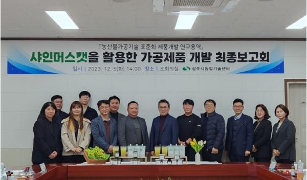 상주시농업기술센터는 12월 5일 농업기술센터 내 소회의실에서 농업인, 가공경영체, 카페운영자 등 관계자 12명이 참석한 가운데 ‘농산물가공기술 표준화 제품개발 용역 최종보고회’를 개최했다.