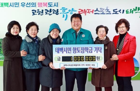 태백시 여성단체협의회 전직 회장단이 지난 5일 태백시청을 방문해 지역인재를 위한 장학금 1백만 원을 전달했다.