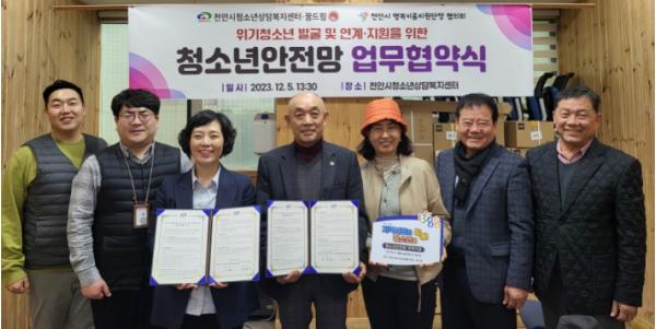 천안시청소년상담복지센터(센터장 이미원)는 지난 5일 천안시 행복키움지원단장 협의회(회장 장윤곤)와 촘촘한 청소년안전망 구축을 위한 업무협약을 체결했다.